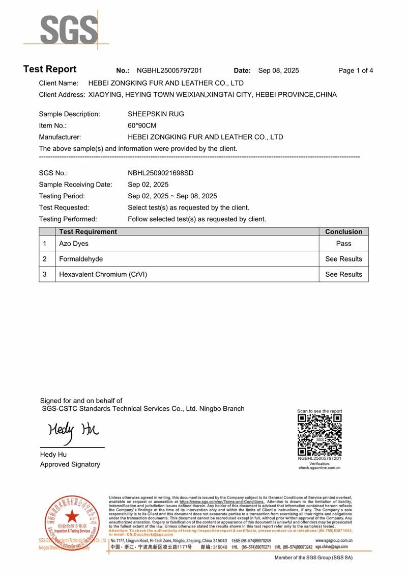 We are a professional fur manufacturer from Weixian County, Xingtai City, Hebei Province, China, known as the famous fur capital. We purchase local sheepskin from Australia and New Zealand and complete the production process in our own factory to ensure product quality. Our sheepskin and wool products are natural, environmentally friendly, and formaldehyde free. We can provide an international SGS testing certificate.